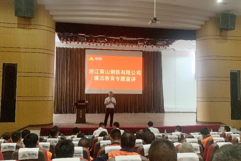7月11日—12日,青山实业董事局监察安全委员会廉洁监察部总经理翁时盼、常务副总经理吴海庆、副总经理杨海涛一行到浙江青山钢铁有限公司开展廉洁工作调研和宣讲活动。